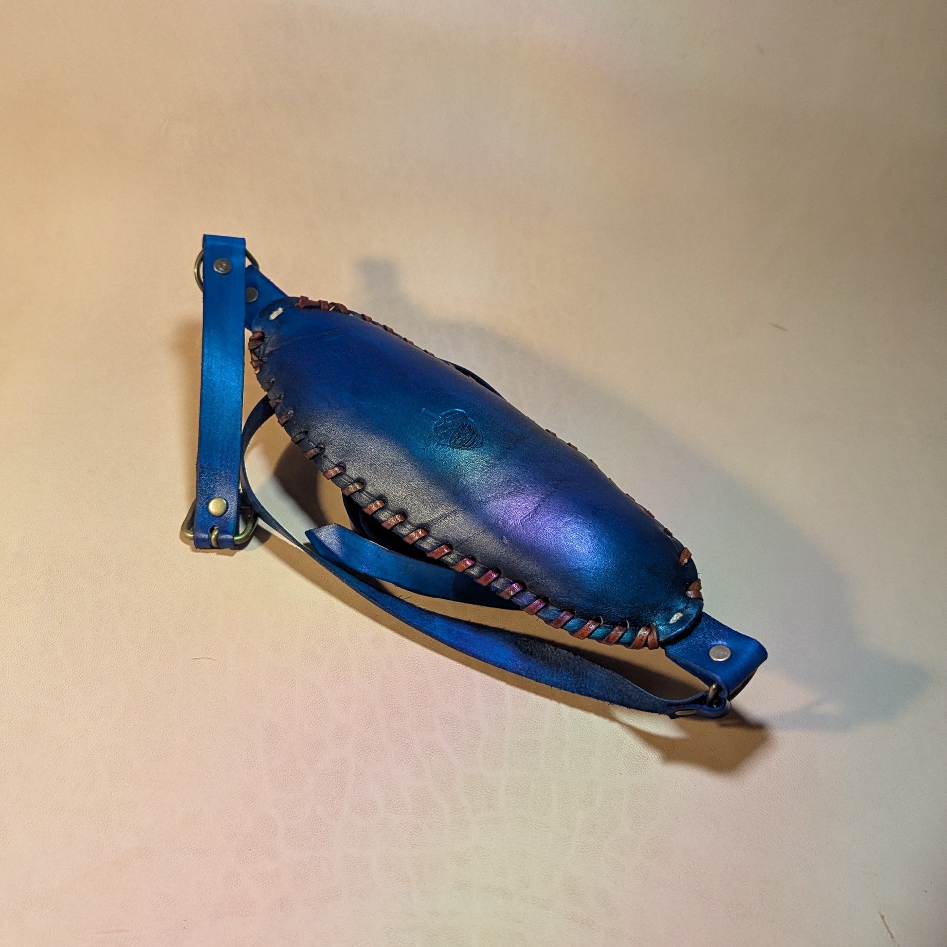 - Cuir bovin tannage végétal, teinture à l'alcool , bouclerie laiton vieilli, crin de cheval ou fibre de coco