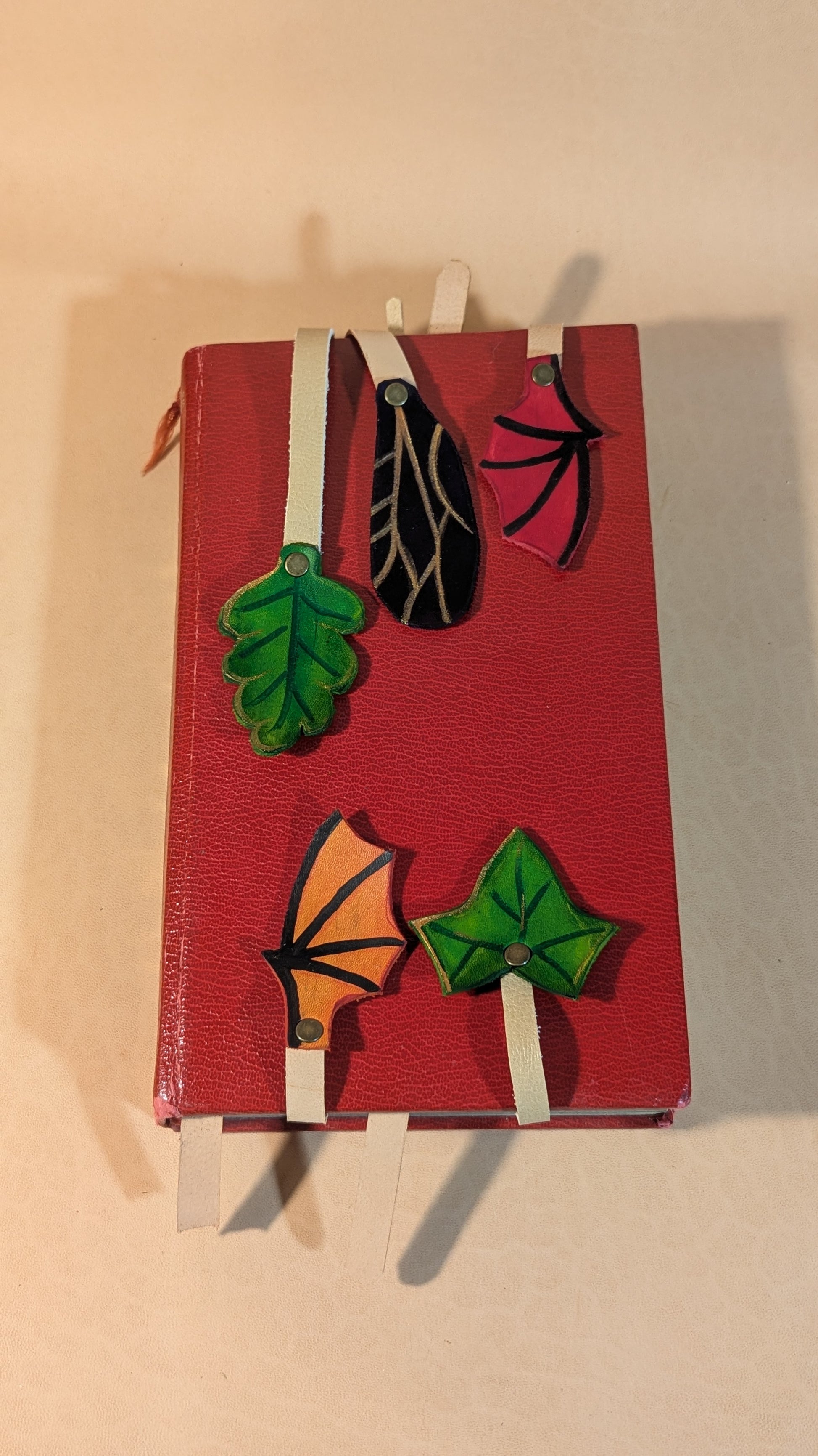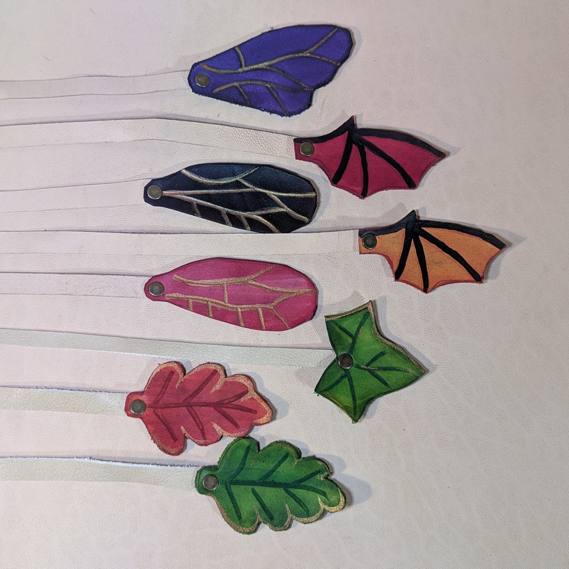 Façonnés par un artisan voyageur ayant passé trop de nuits à feuilleter de vieux grimoires à la lumière des chandelles, ces marque-pages en cuir prennent la forme de feuilles dansantes ou d’ailes délicates. Glissés entre deux pages, ils gardent la trace de vos sortilèges, de vos chants anciens ou de vos récits d’aventure sans jamais abîmer vos livres.